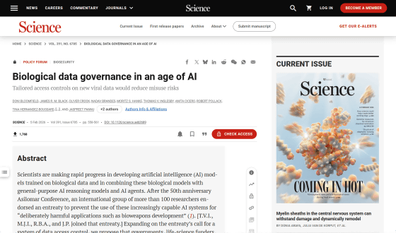 AIテクノロジーの発達はさまざまな科学研究を前進させると期待されていますが、サイバー犯罪や兵器開発などにAIが悪用される危険性も懸念されています。そこでオックスフォード大学やスタンフォード大学、コロンビア大学、ジョンズ・ホプキンズ大学、ニューヨーク大学などに属する100人以上の科学者らが、「AIモデルの学習に使用できる生物学データに段階的な制限を課す枠組み」を提案しました。