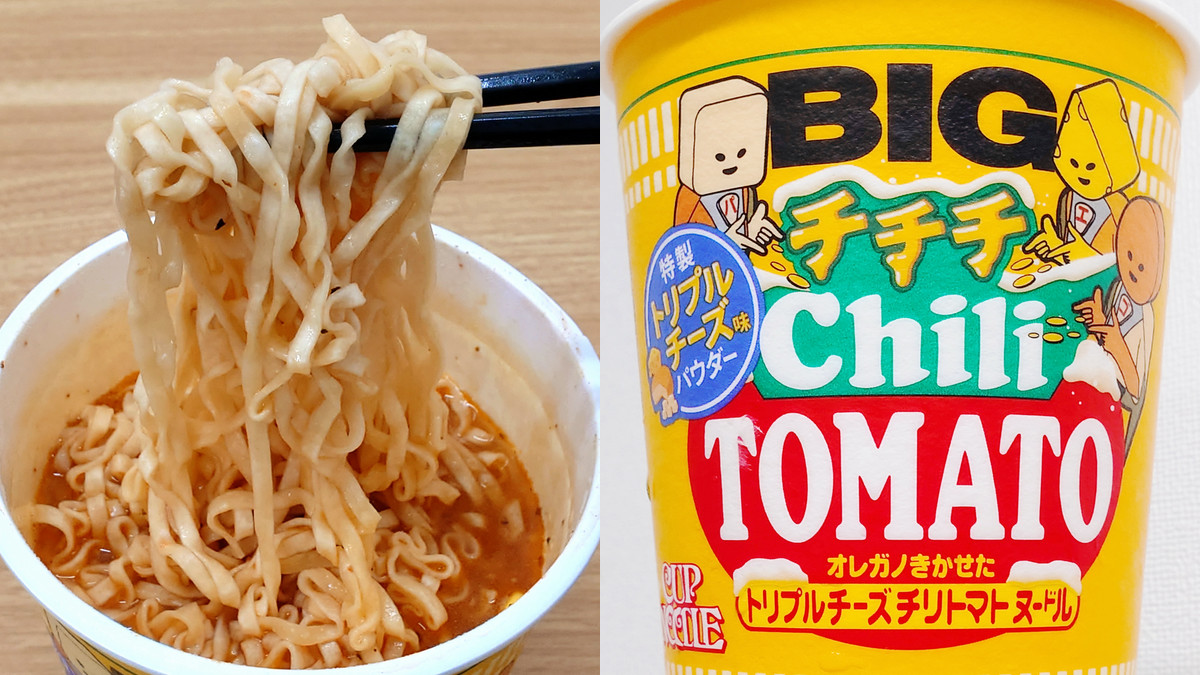 日清食品が「『チリトマトヌードル』にチーズを入れるとおいしい」というSNSの口コミに注目して作った新商品「カップヌードル チチチチリトマト ビッグ」が2026年2月9日(月)に登場したので、買ってきて食べてみました。