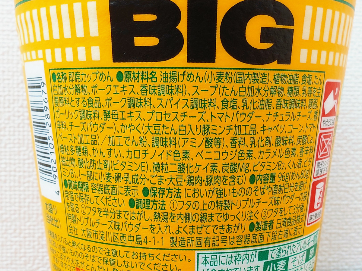 フタに「特製トリプルチーズ味パウダー」が貼り付けられていました。トリプルチーズとはパルメザンチーズ、エメンタールチーズ、ゴーダチーズの3種類を指します。