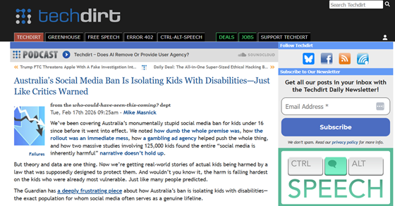 https://www.techdirt.com/2026/02/17/australias-social-media-ban-is-isolating-kids-with-disabilities-just-like-critics-warned/