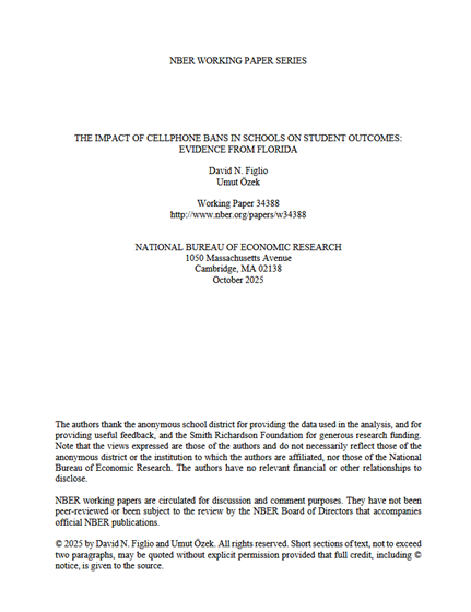 The Impact of Cellphone Bans in Schools on Student Outcomes: Evidence from Florida | NBER