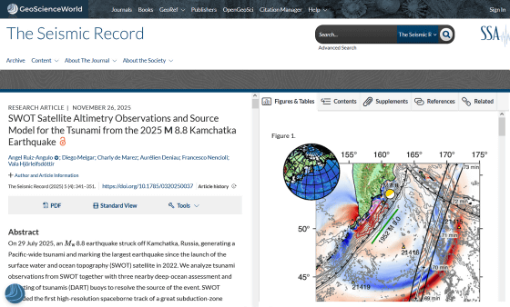 2025年7月30日、ロシアのカムチャッカ半島付近でマグニチュード8.8の巨大地震が発生し、日本でも太平洋側を中心とした広範囲に津波が押し寄せました。この際に発生した巨大津波を人工衛星が偶然にも捉えており、その詳細な姿が明らかになりました。