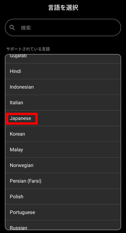 「Japanese」をタップ。