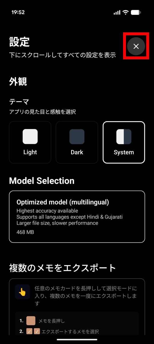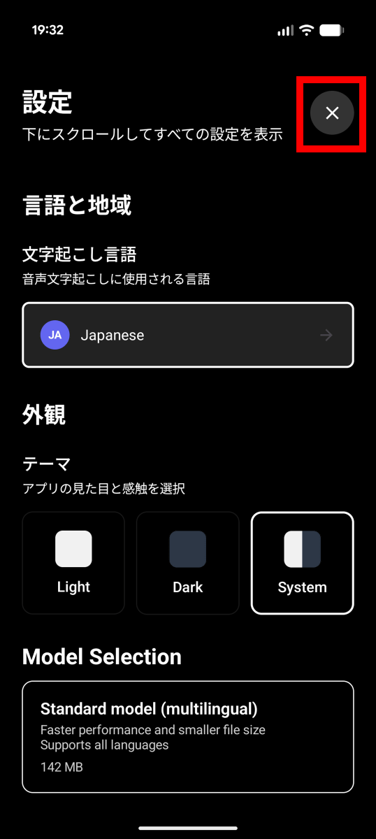 設定が完了したら右上の×ボタンをタップします。
