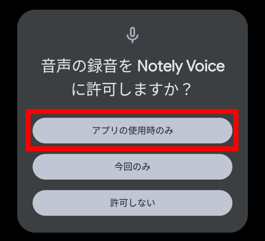 初回は録音許可を求められるので「アプリの使用時のみ」をタップ。