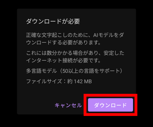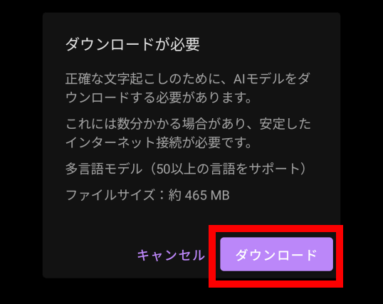 初回はAIモデルのダウンロードが必要なので「ダウンロード」をタップ。