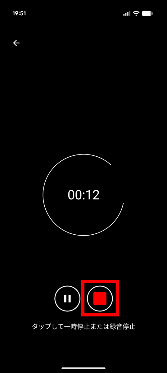 もう一度録音ボタンをタップ。