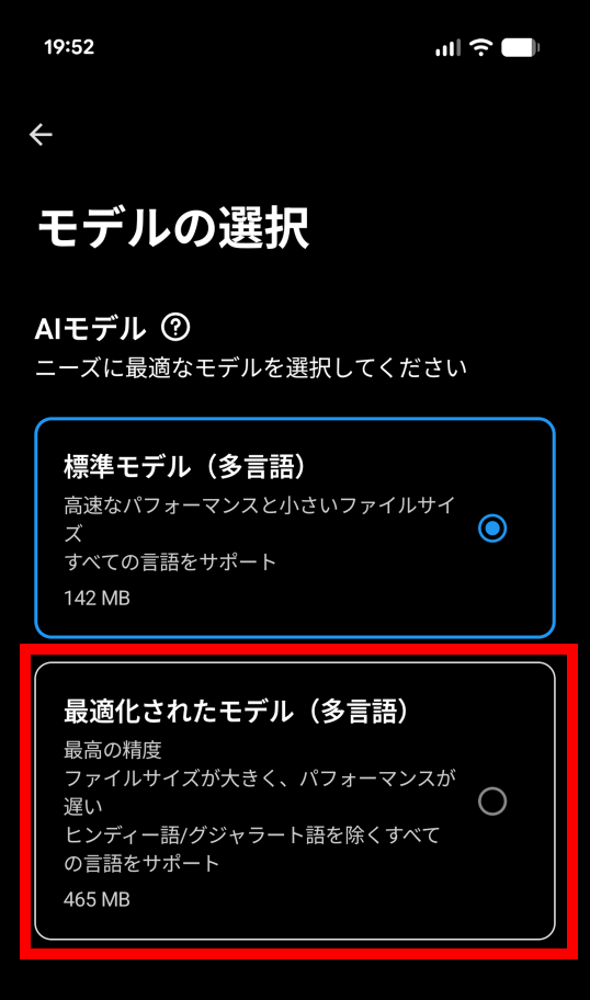 「最適化されたモデル」をタップ。