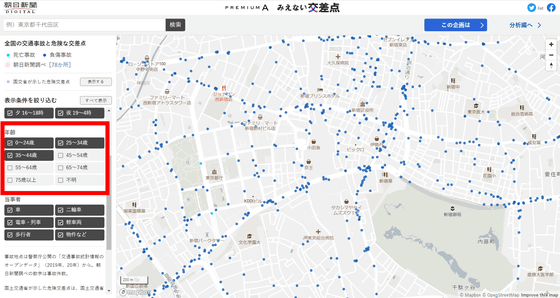 さらに、事故の当事者の年齢でも表示を切り替えることができます。
