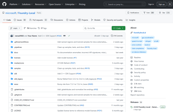 また、Foundry Localのソースコードは以下のリンク先で公開されています。