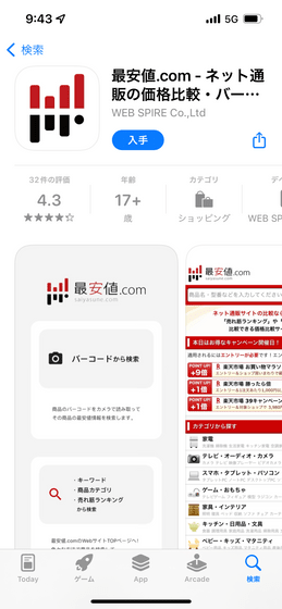 「最安値.com」のアプリには、iOS版とAndroid版が存在しています。今回はiOS版を使ってみます。