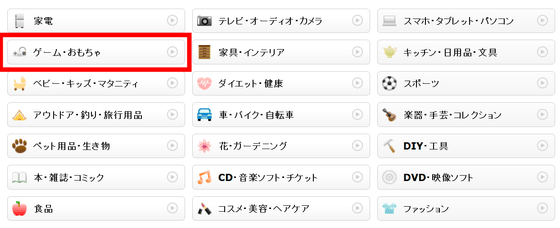 自分用の品物を購入する際は購入したい製品を1つに絞り込みやすいですが、他人へのプレゼントを購入する際などは品物を1つに絞り込めず「人気の品物が知りたいな~」という考えに至りがちです。そんな時はページトップに表示された各カテゴリ、例えば「ゲーム・おもちゃ」をクリックすることで……