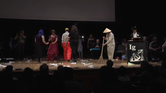 イグ・ノーベル賞は当初、一部の科学者から「科学をバカにしている」と批判も受けたことがありましたが、今ではユーモアのある賞として科学者からも高く評価されています。授賞式には毎回本家ノーベル賞受賞者が参列し、中には毎度のように会場で飛ばされる大量の紙飛行機を掃除する役目を、2005年ノーベル物理学賞を受賞したロイ・グラウバー氏が務めていたこともありました。