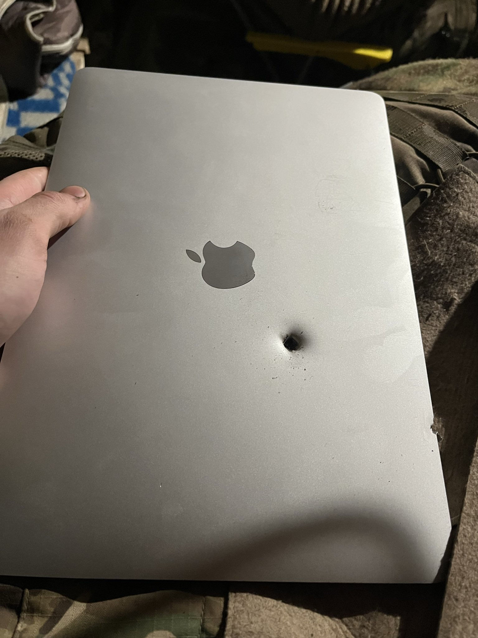 @Apple MacBook Air 2020 M1 stopped a fragment from an artillery shell 🤙