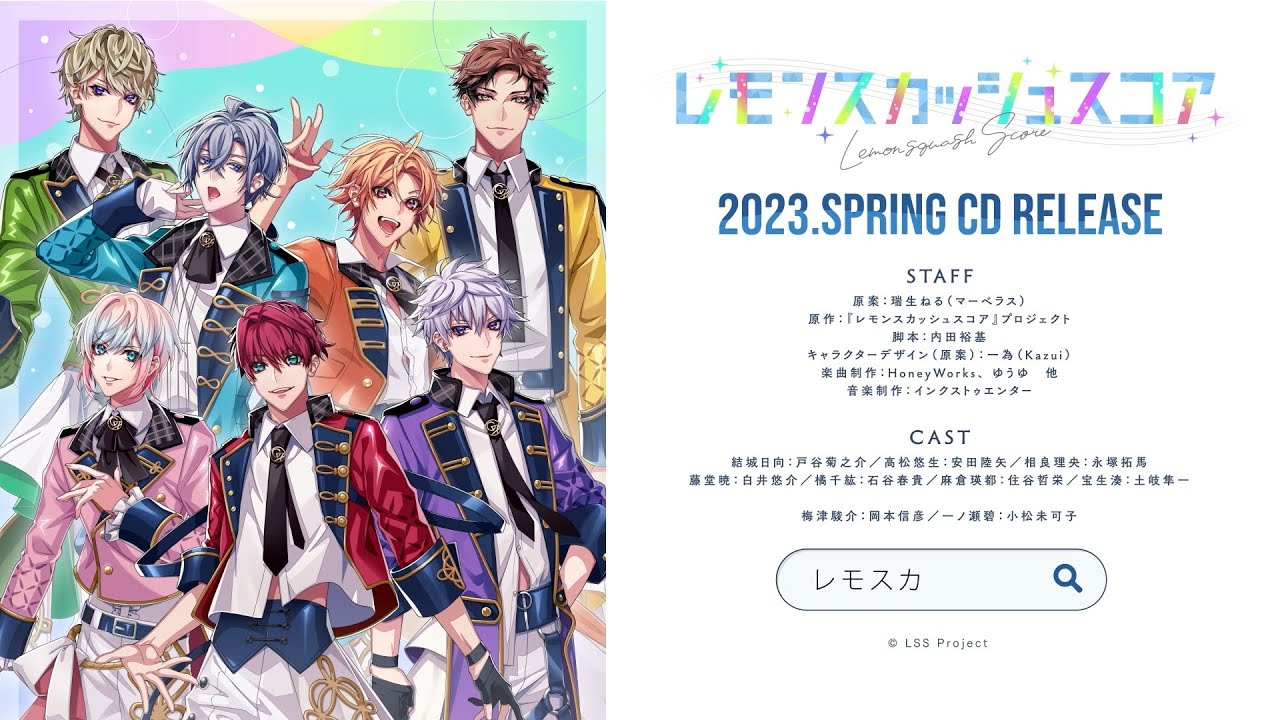 ドラマと音楽を融合させたという新たなアイドルプロジェクト「レモンスカッシュスコア」の始動が発表されました。アイドル戦国時代にデビューを目指す研究生を演じるのは戸谷菊之介(結城日向役)、安田陸矢(高松悠生役)、永塚拓馬(相良理央役)、白井悠介(藤堂暁役)、石谷春貴(橘千紘役)、住谷哲栄(麻倉瑛都役)、土岐隼一(宝生湊役)の7人。楽曲制作はHoneyWorks、ゆうゆ、他が担当し、2023年春にドラマと楽曲を収録したCD第1弾(仮)のリリースが決定しています。