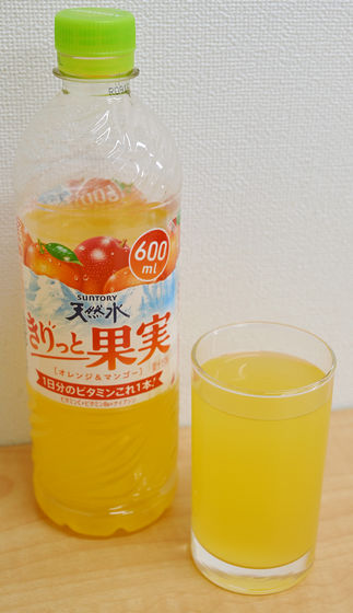 マンゴーとオレンジの甘みが残らずすっきりとした飲み心地の「サントリー天然水 きりっと果実 オレンジ&マンゴー」を飲んでみた