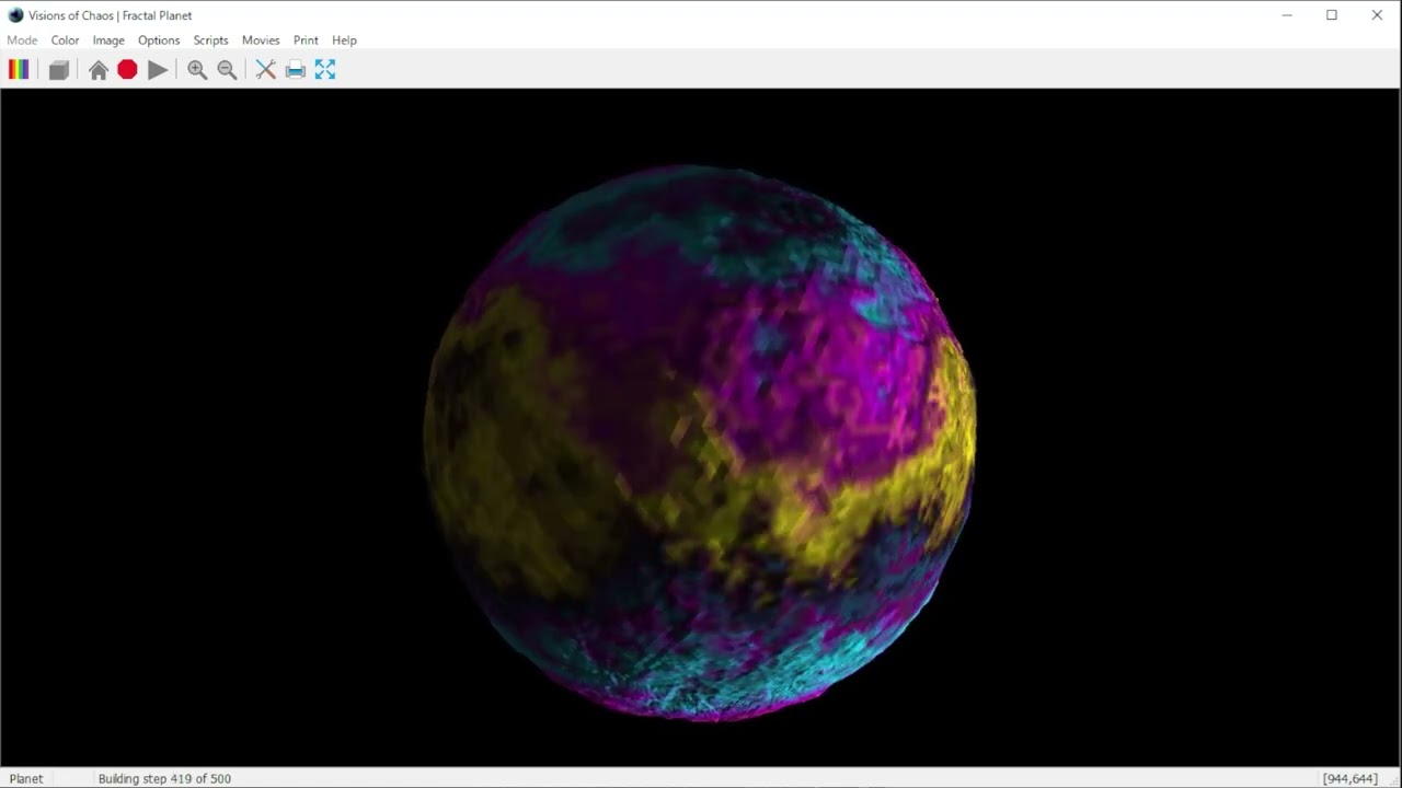 数学モデルを生成するフリーソフト「Visions of Chaos」でフラクタル図形から惑星を生成する「planet」をシミュレートしてみた - YouTube