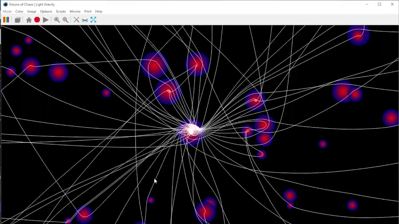 大量の光線が重力源に引き込まれるシミュレーションをフリーソフト「Visions of Chaos」で生成してみた - YouTube