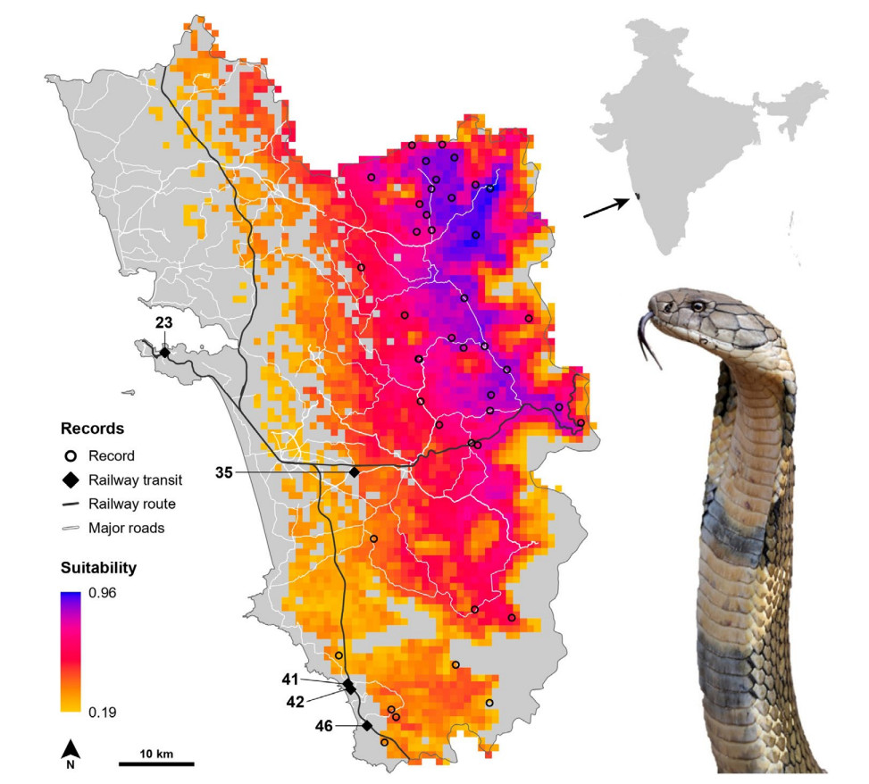 具体的な事例として、ゴア州南部のチャンドール駅では、鉄道の整備資材の下からキングコブラが救助されています。また、ゴア州のバスコ・ダ・ガマ駅の近くでも生息適性モデルの予測から大きく外れた場所で個体が発見されました。