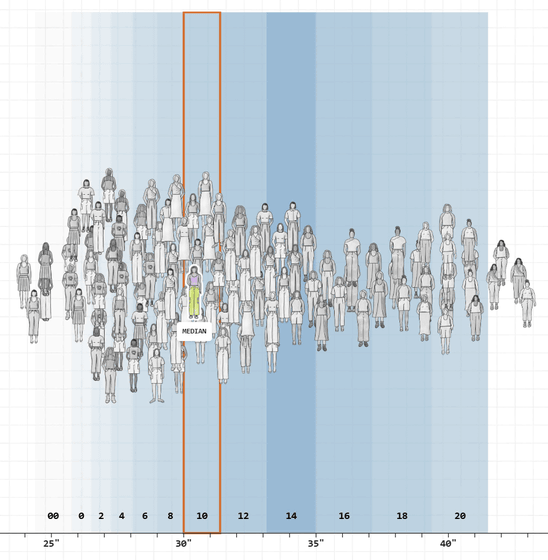 問題はほとんどの「ストレート」あるいは「レギュラー」などと表記されている服のサイズが、「16」サイズまでしかないというところにあります。その結果、何百万人もの成人女性(半数以上)が標準サイズの範囲から除外されてしまっているというわけ。