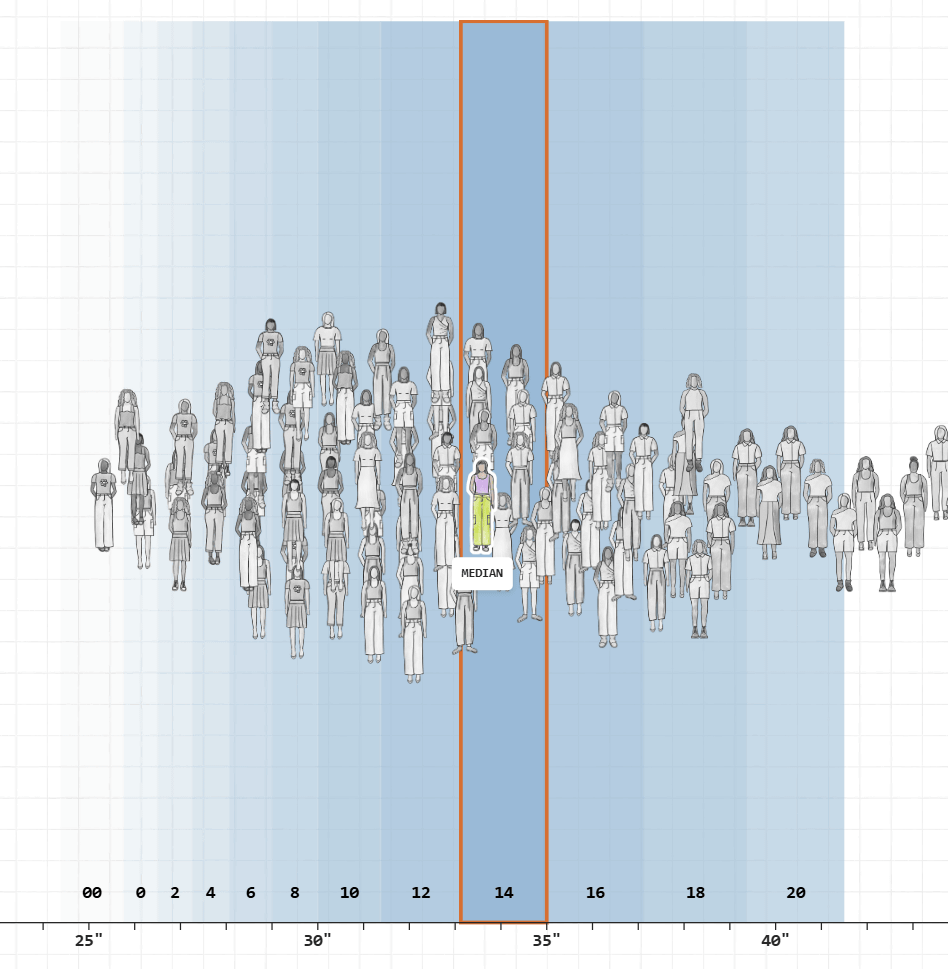問題はほとんどの「ストレート」あるいは「レギュラー」などと表記されている服のサイズが、「16」サイズまでしかないというところにあります。その結果、何百万人もの成人女性(半数以上)が標準サイズの範囲から除外されてしまっているというわけ。