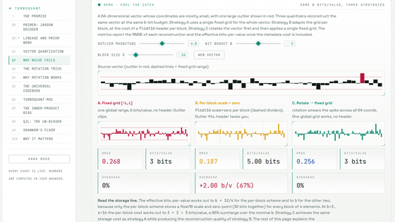 AIを数分の1のデータ量で動かすための「TurboQuant」の仕組みをインタラクティブな図解で把握できるサイト「TurboQuant: A First-Principles Walkthrough」