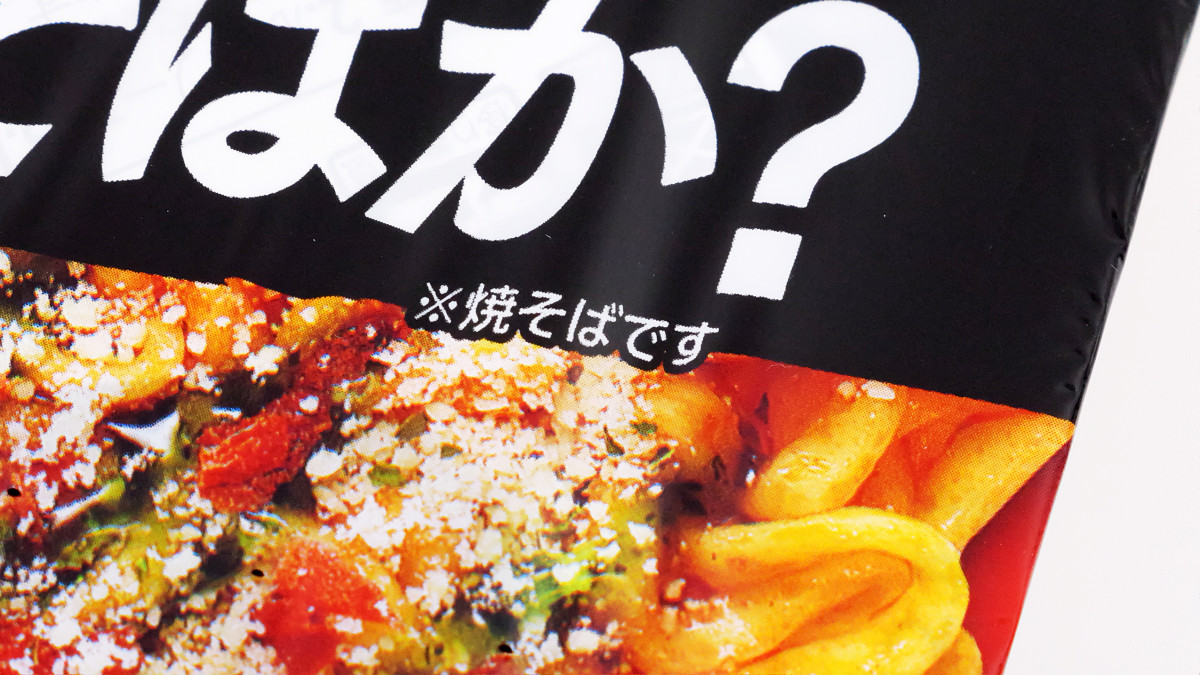 買ってきました。パッケージには「これはピザか、焼そばか?」と書かれています。
