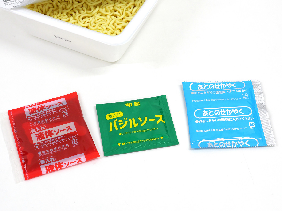 容器の中には液体ソース、バイルソース、あとのせかやくが入っていました。