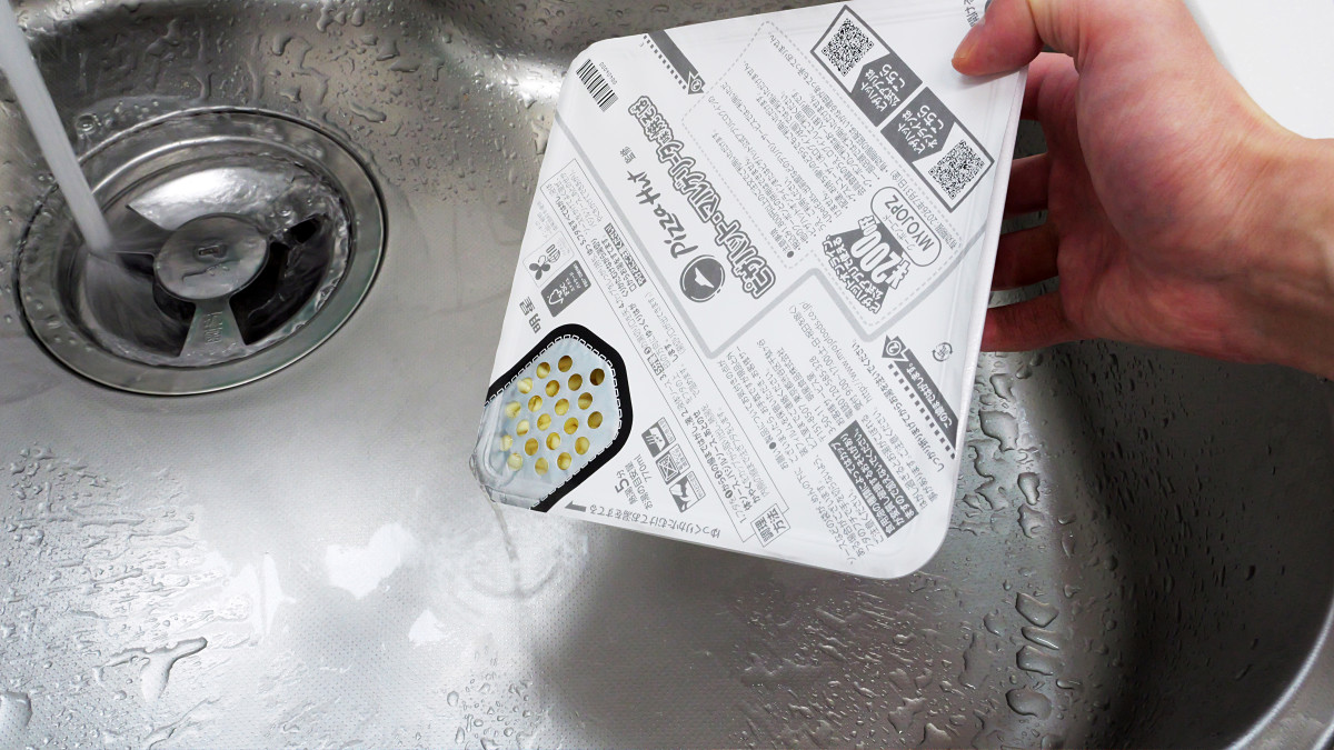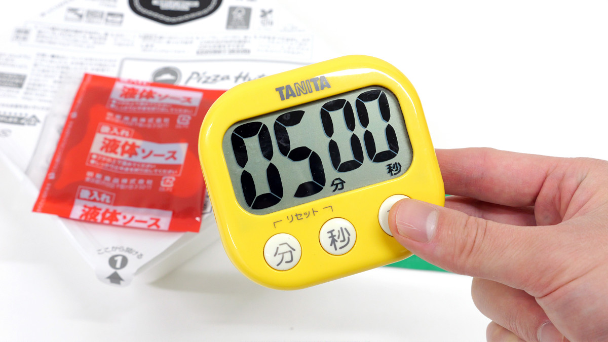 熱湯を注いで液体ソースをフタの上で温めつつ5分待ちます。熱湯は約770ml必要です。