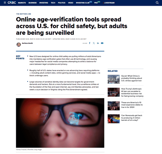 アメリカではオンライン上で子どもを保護するために、プラットフォーマーにユーザーの年齢確認を義務付ける法律である「年齢確認法」が検討されており、既にAppleやDiscordは年齢確認法に則った年齢確認ツールの導入を進めています。しかし、子どもの安全を守るための年齢確認ツールが、大人の監視に利用されているとCNBCが報じました。