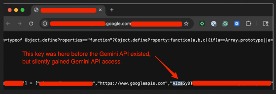 Googleが「公開してOK」と案内していたAPIキーがGeminiの認証キーにもなっているせいで個人情報垂れ流し状態のウェブサイトが大量に存在