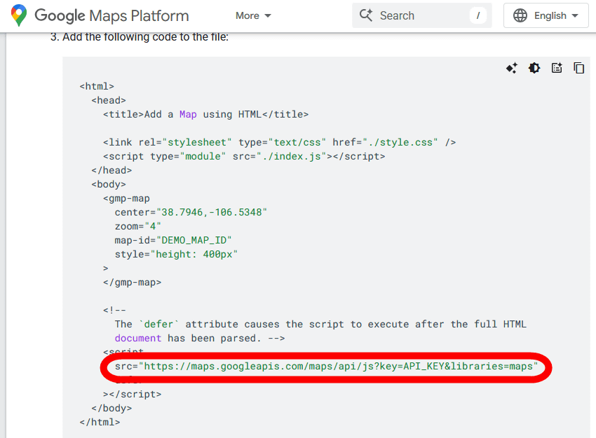 Googleマップのドキュメントでもウェブサイトのコード内にAPIキーを含める例が提示されています。