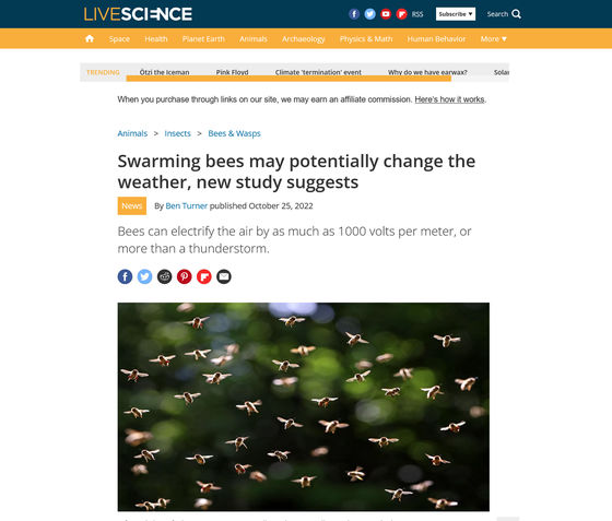 「バタフライ効果は本物かもしれない」と科学者が宣言、ミツバチの群れが天気を変えるという研究結果