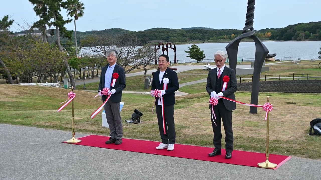 続いて神村社長、山根社長が挨拶。山根社長によると、企画の発端は2022年7月ごろに若手社員から「ロンギヌスの槍を作ってみたい」という声が上がったこと。すぐに営業担当者が宇部市と交渉し、最終的にときわ公園に設置するという形で話が進むことになったそうです。