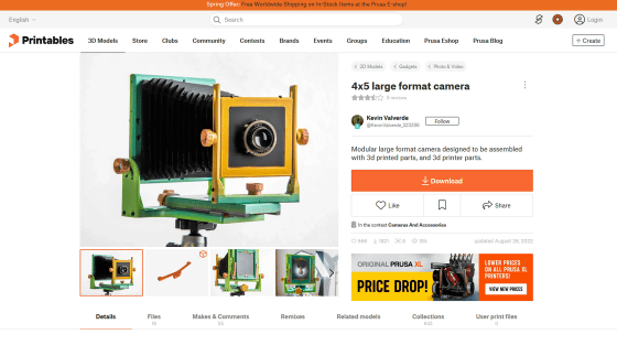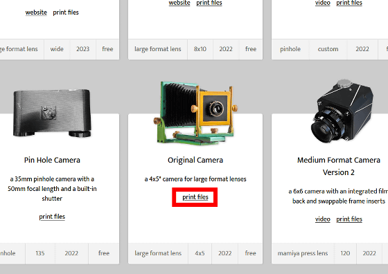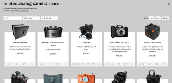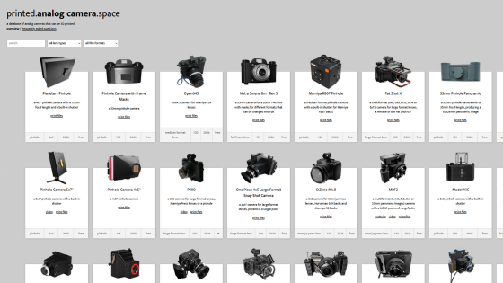 printed.analog camera.spaceにアクセスすると3Dプリンター用のデータが公開されているカメラの情報がズラリと表示されます。