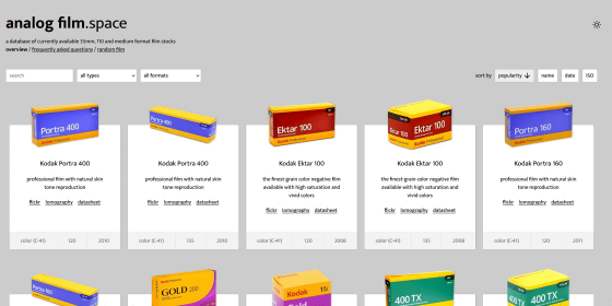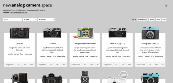 また、製品として販売されているフィルムカメラの情報サイトも公開されています。