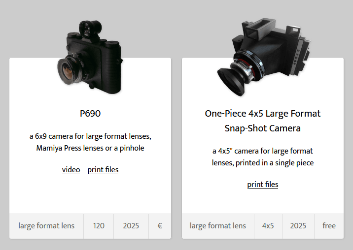 3Dプリンターで作れるフィルムカメラの一覧サイト「printed.analog camera.space」
