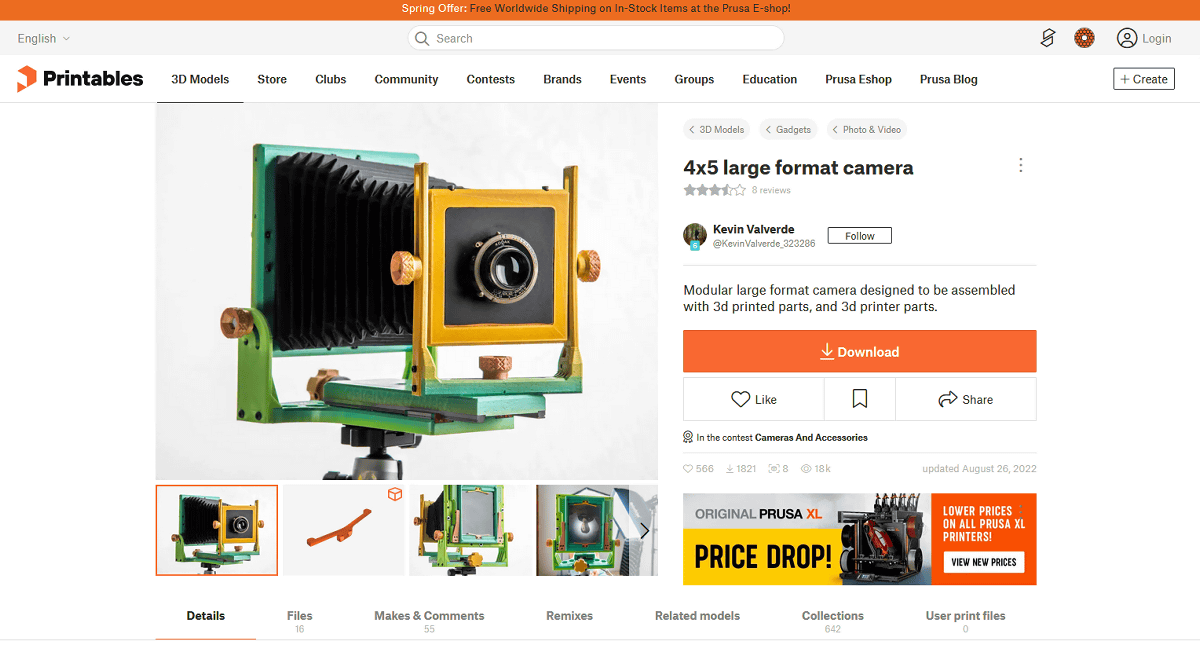 printed.analog camera.spaceにアクセスすると3Dプリンター用のデータが公開されているカメラの情報がズラリと表示されます。