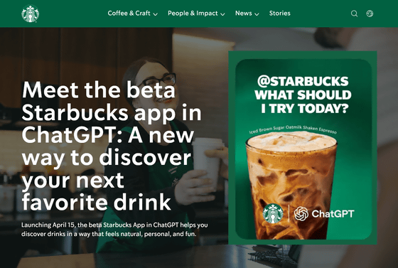 世界最大のコーヒーチェーンであるスターバックスは、AIを使用してユーザーの気分に応じたドリンクを推奨するためのChatGPT内ミニアプリを2026年4月15日に発表しました。テキストで気分を伝えたり、現在の場所や天気を画像でアップロードしたりすることで、AIがドリンクを提案してくれます。