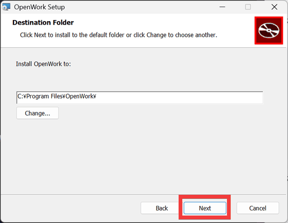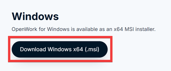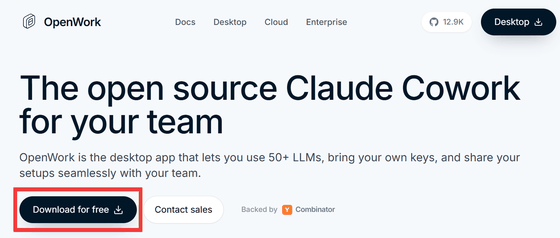 OpenWorkの公式ページにある「Download for free」をクリック。