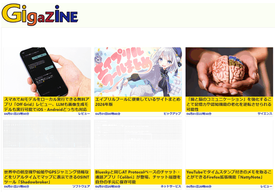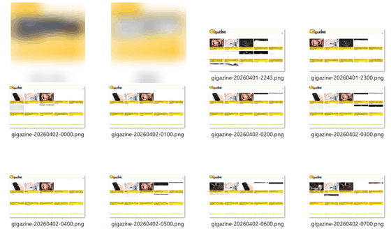 数時間後、1時間おきにgigazine.netのスクリーンショットが撮影されているのが確認できました。