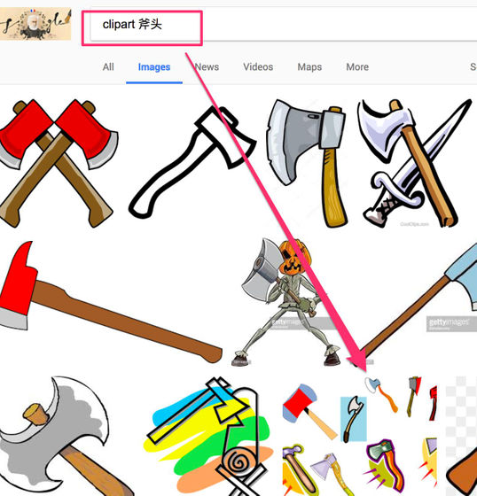 しかし、「おの」を示す英単語は「Axe」であるため、「Y」という文字に添えるイラストとしては不適当です。また、gmauch氏は手おの(hatchet)やトマホーク(tomahawk)など、おのに関する同義語を調べましたが、Yから始まるものは見つかりませんでした。そこでgmauch氏はStack Exchangeのユーザーの力を借りることで、このイラストの特定を試みました。