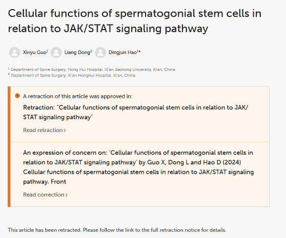 Frontiers | An expression of concern on: 'Cellular functions of spermatogonial stem cells in relation to JAK/STAT signaling pathway' by Guo X, Dong L and Hao D (2024) Cellular functions of spermatogonial stem cells in relation to JAK/STAT signaling pathway. Front