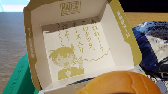「油淋鶏チーズチキンタツタ」は箱入りタイプのバーガーで、箱にはコナンのイラストが描かれていました。