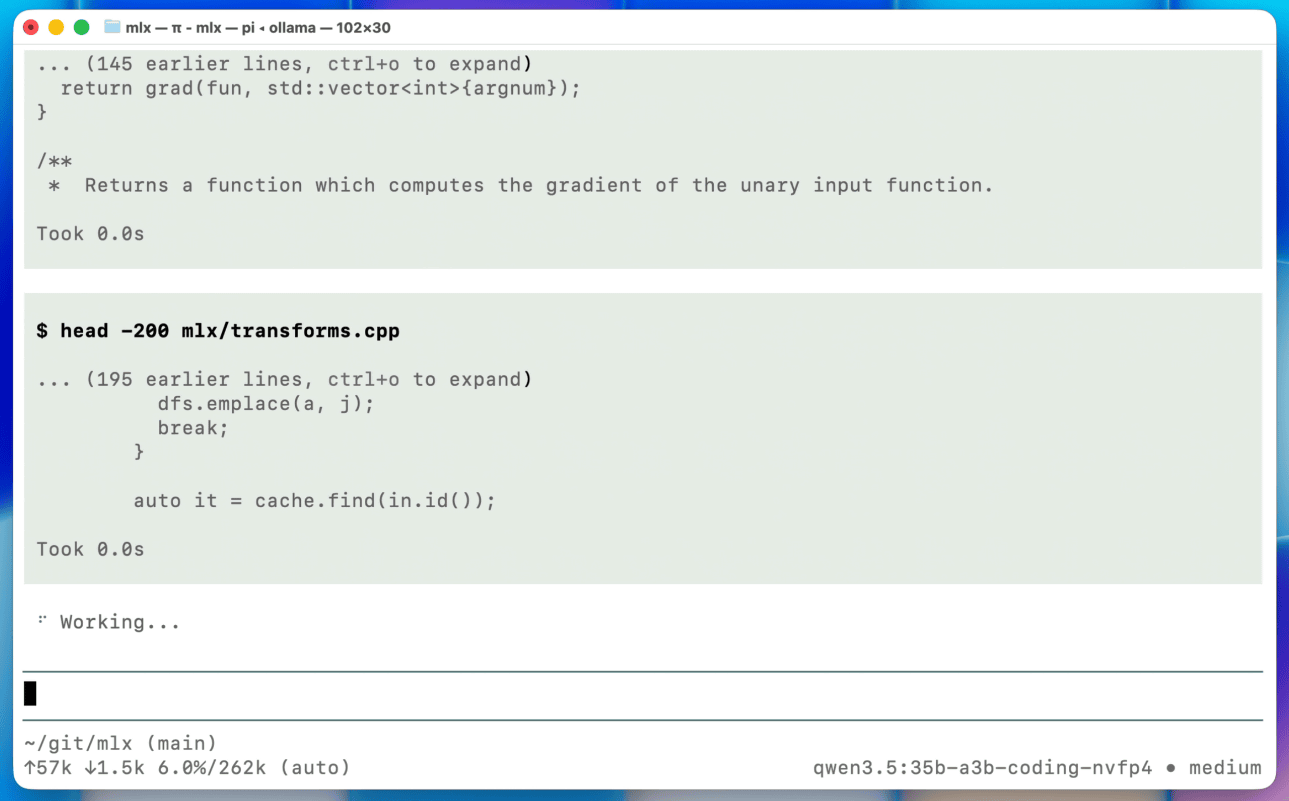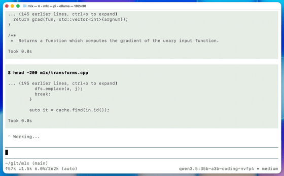 なお、このプレビュー版は記事作成時点だとコーディングタスク向けに調整されたAlibabaのQwen3.5-35B-A3Bモデルが高速化の対象となっており、32GB以上のユニファイドメモリを搭載したMacが必要です。Qwen3.5-35B-A3BはClaude CodeやOpenClawといったツールを介して利用できるほか、コマンドラインから直接実行することもできます。
