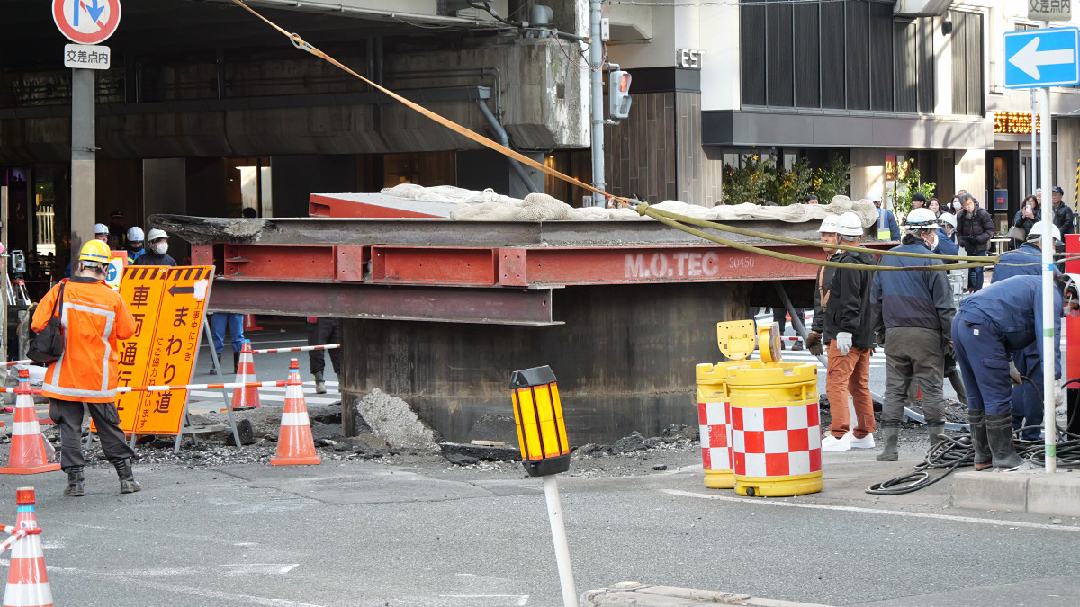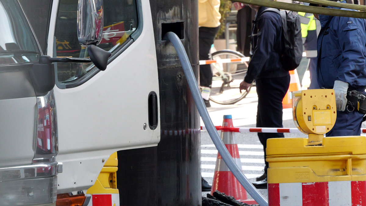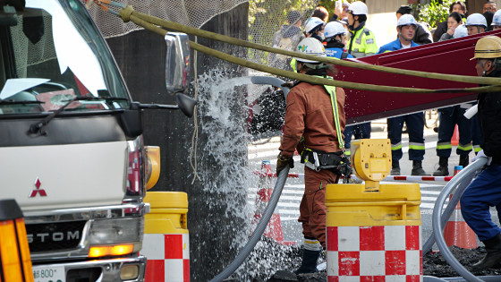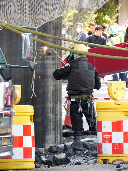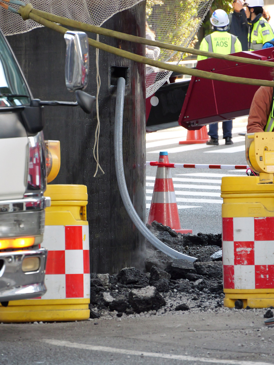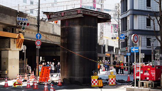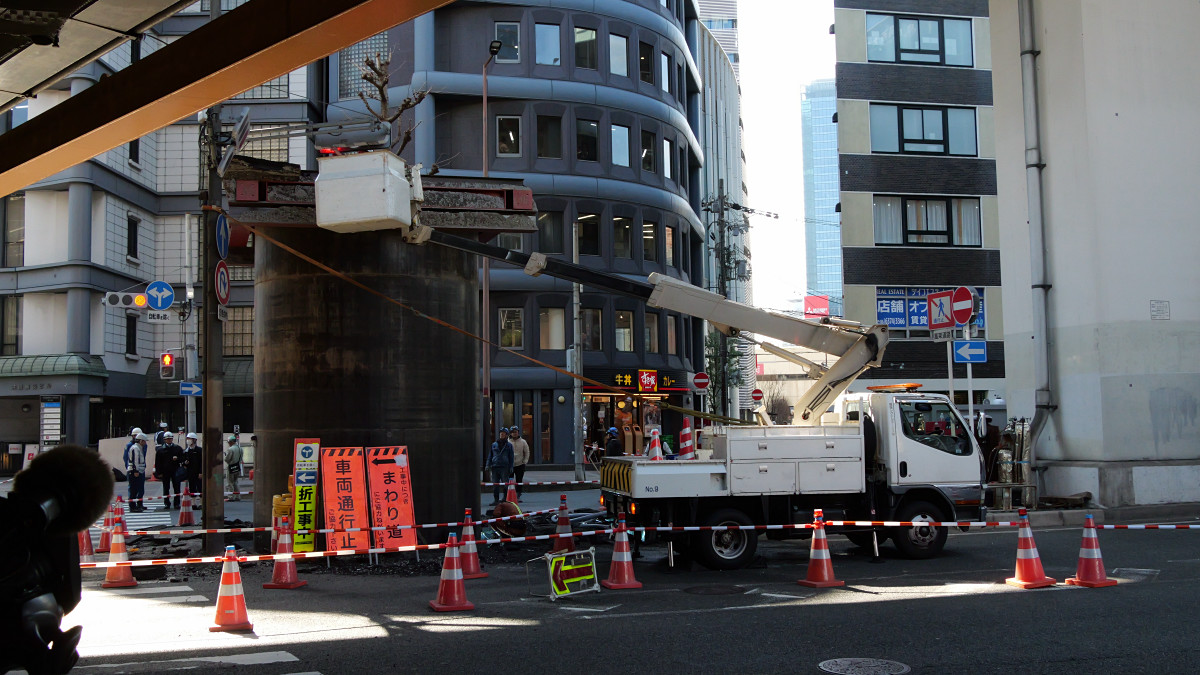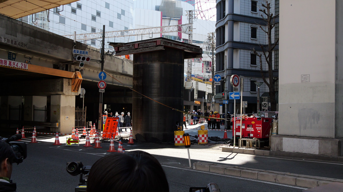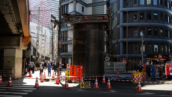 大阪の地下から謎の巨大下水管が突き出してきた、復旧作業の様子も撮影してきたよレポート