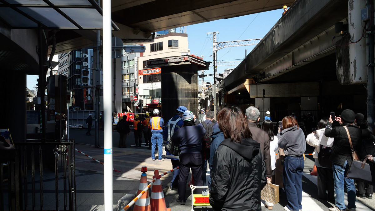 現場に近づくと、人だかりができていました。