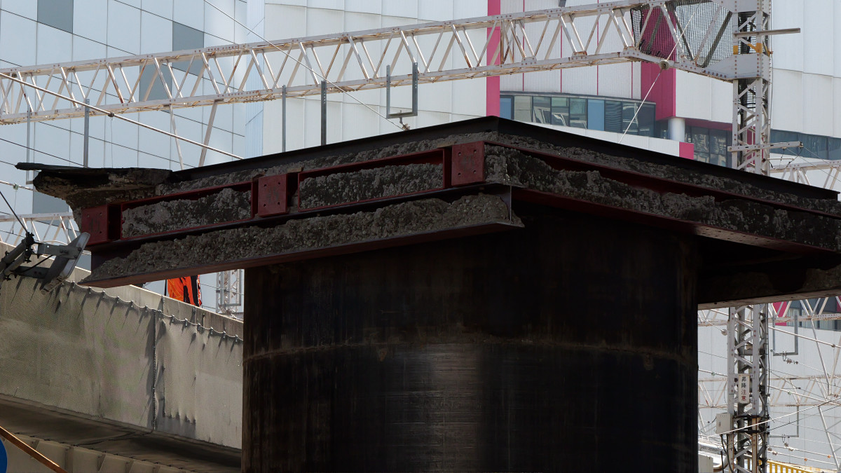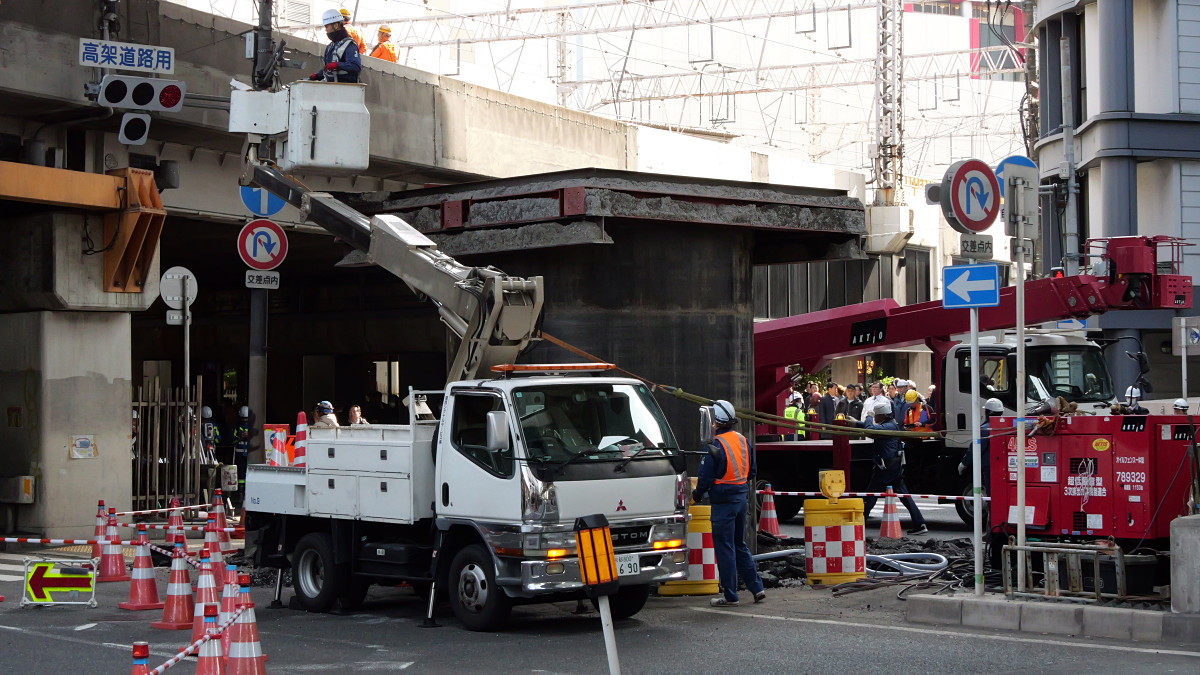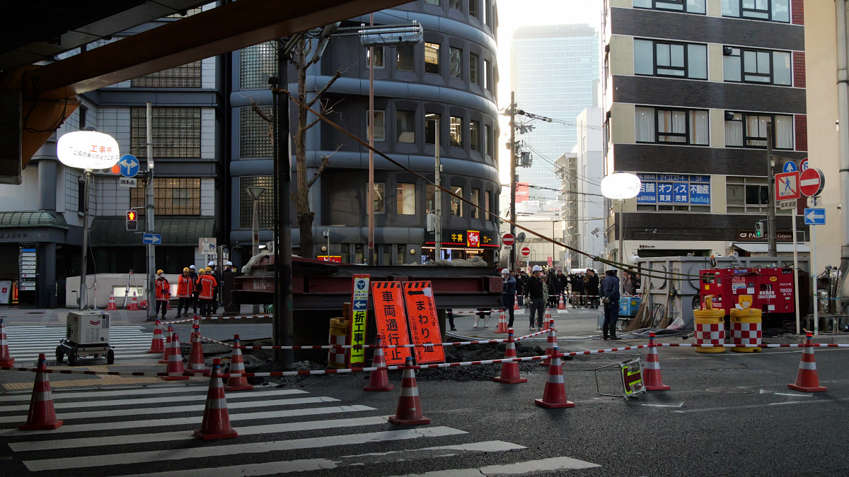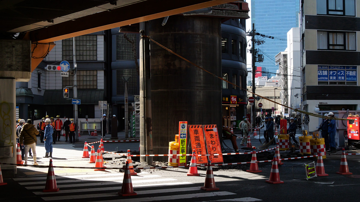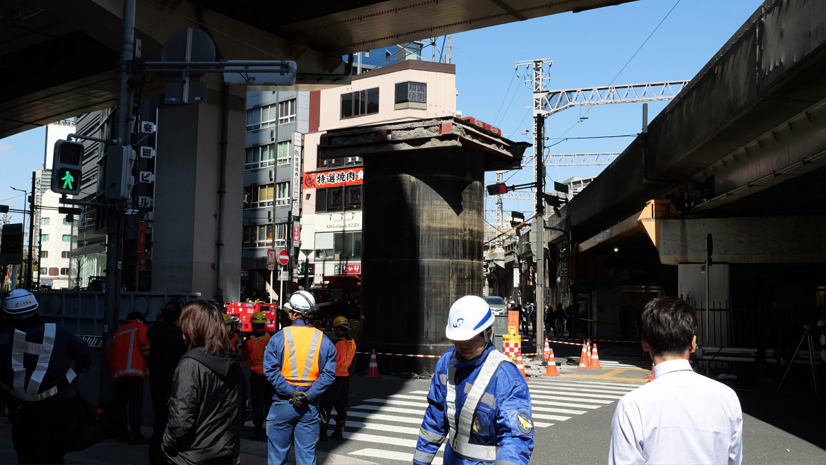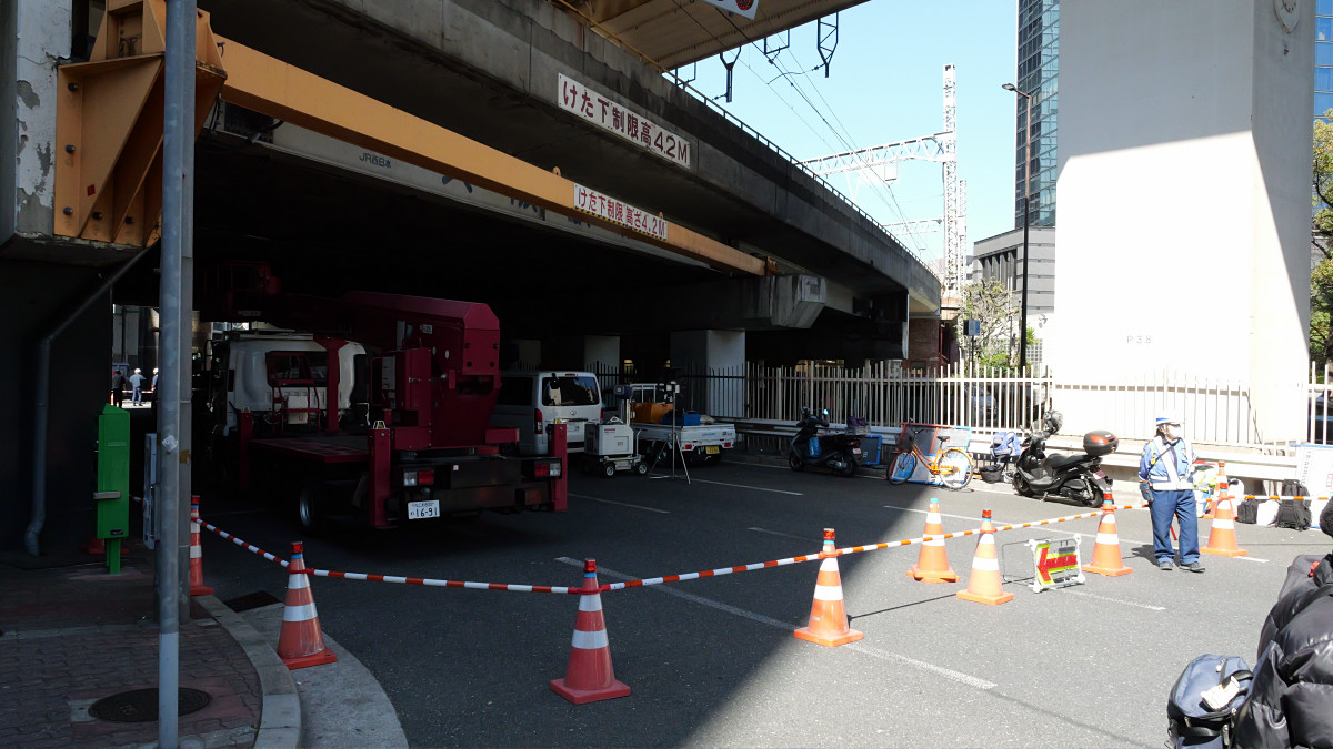 現場はJR大阪駅から徒歩5分くらいの位置で、JR京都線と新御堂筋が交差する地点です。