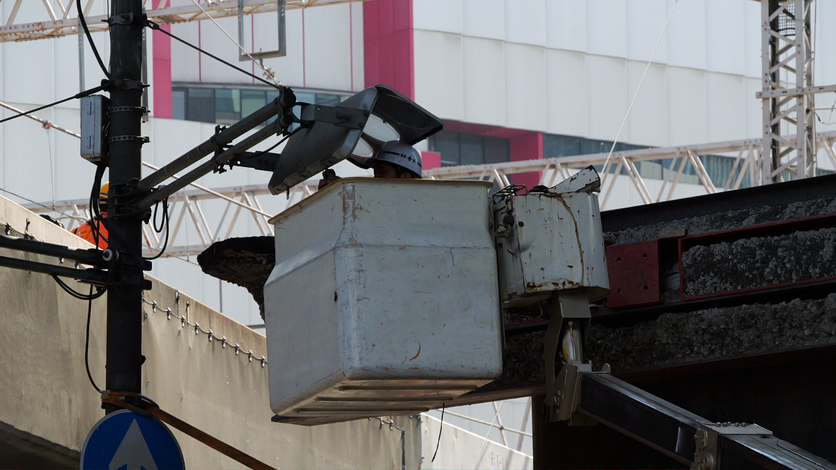 パイプの復旧作業と並行して信号機の交換作業も進みます。