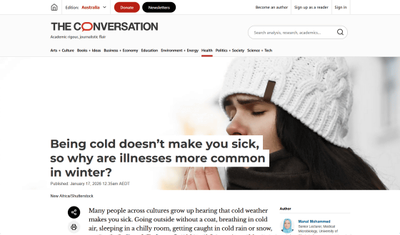映画やアニメなどでは、「寒い日にコートを着ずに外へ出たり、冷たい雨に降られたりして体が冷えると風邪を引く」というシーンがよく描かれます。しかし、実際のところ寒さ自体は風邪やインフルエンザなどの病原体ではないため、寒さが直接病気を引き起こすわけではありません。イギリスのウェストミンスター大学で医学微生物学の上級講師を務めるマナル・モハメッド氏が、「寒さ自体は病原体ではないのに冬になると病気が増える理由」について解説しました。